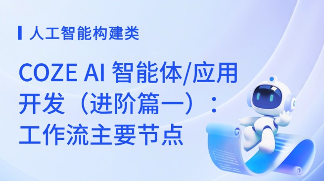 COZE AI 智能体/应用开发(进阶篇一):工作流主要节点本课程将帮助学员深入了解工作流的核心节点,包括任务分配、数据处理、决策制定和反馈循环等,并通过COZE AI平台的实际操作,展示如何通过各节点搭建特定场景下的工作流以实现自动化和智能化。¥710 查看详情