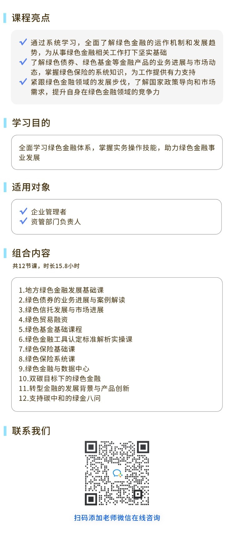 绿色债券的业务进展与案例解读绿色金融基础课¥110 查看详情