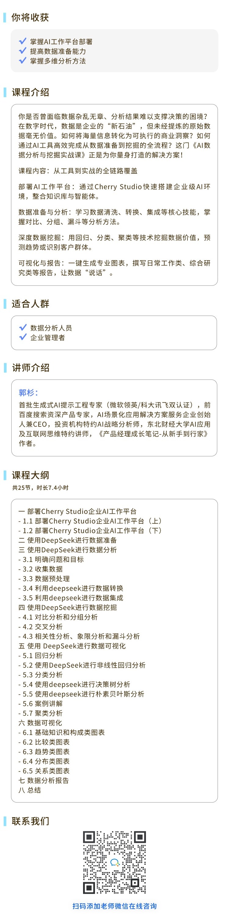 用DeepSeek帮数据讲故事:数据分析师的商业可视化表达课报名费:¥120