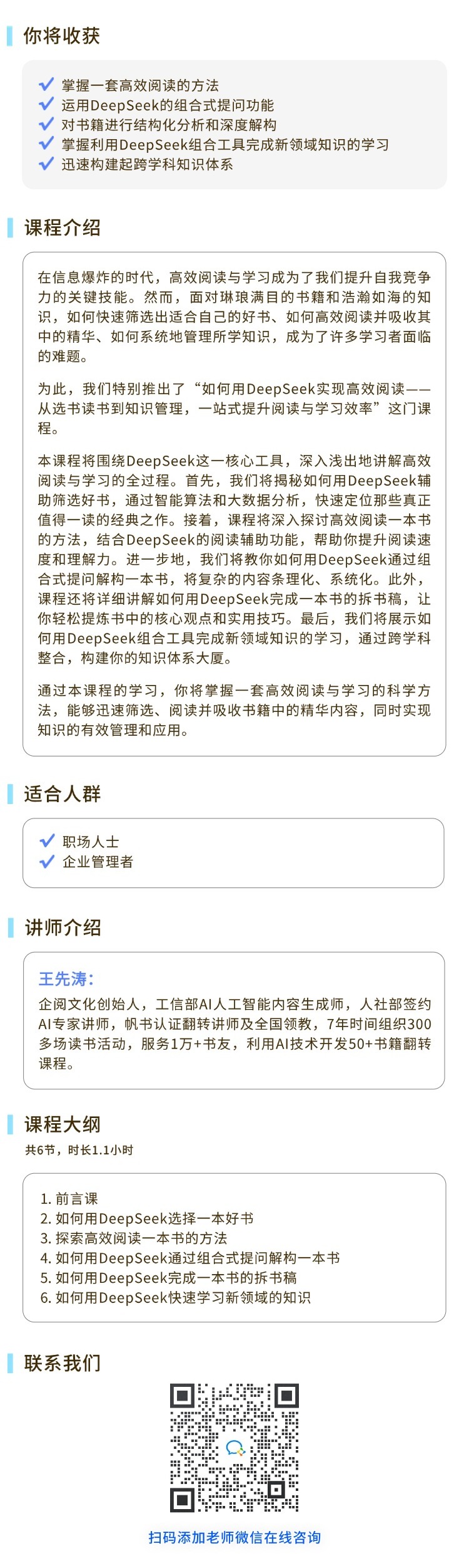 DeepSeek从入门到应用 普通人也能用的实战指南报名费:¥50