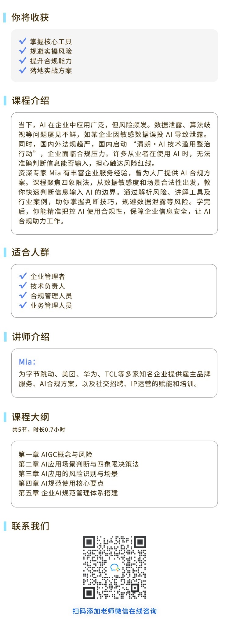 企业AI合规必修课:四象限法帮你安全规范用 AI报名费:¥20
